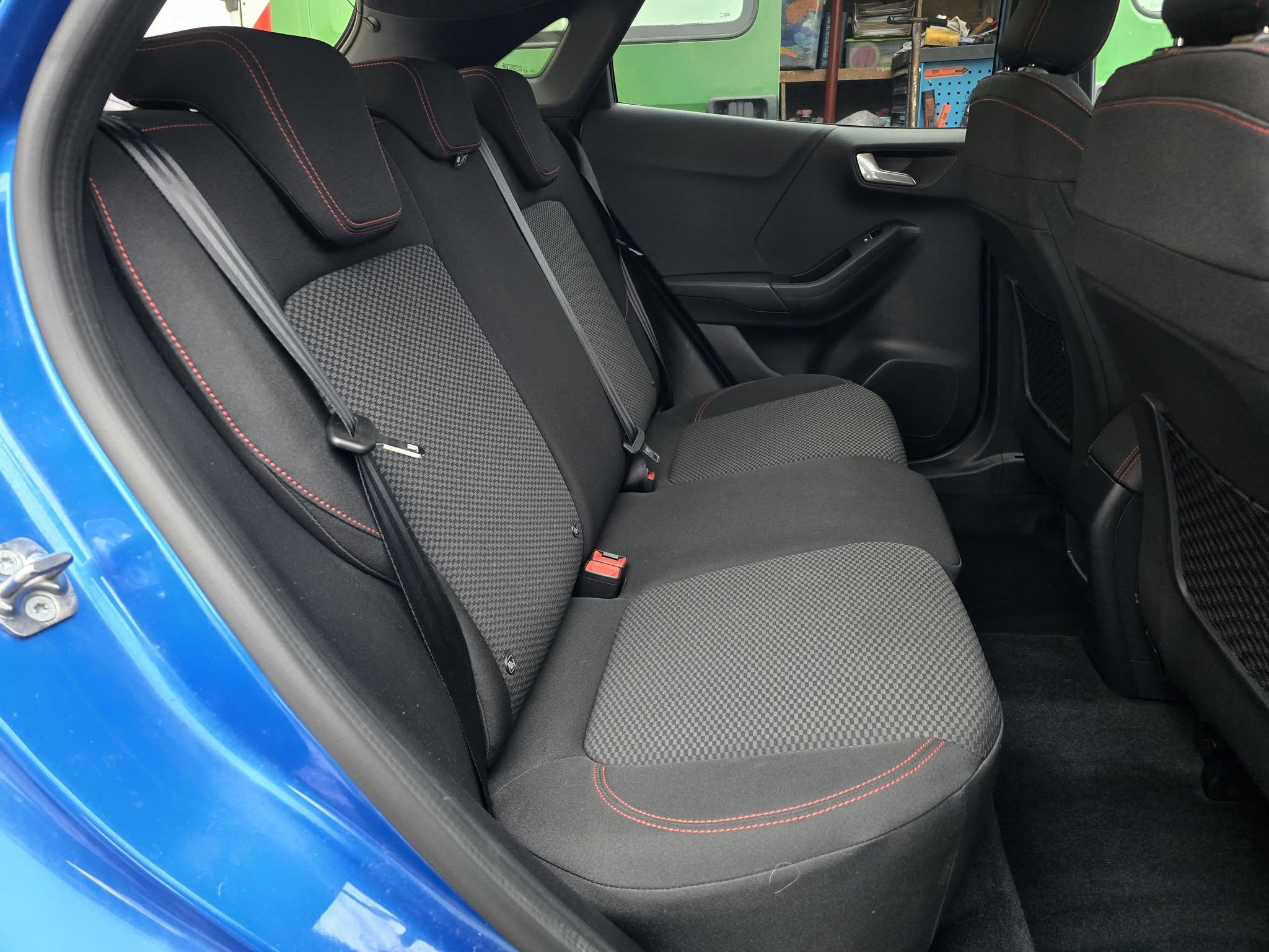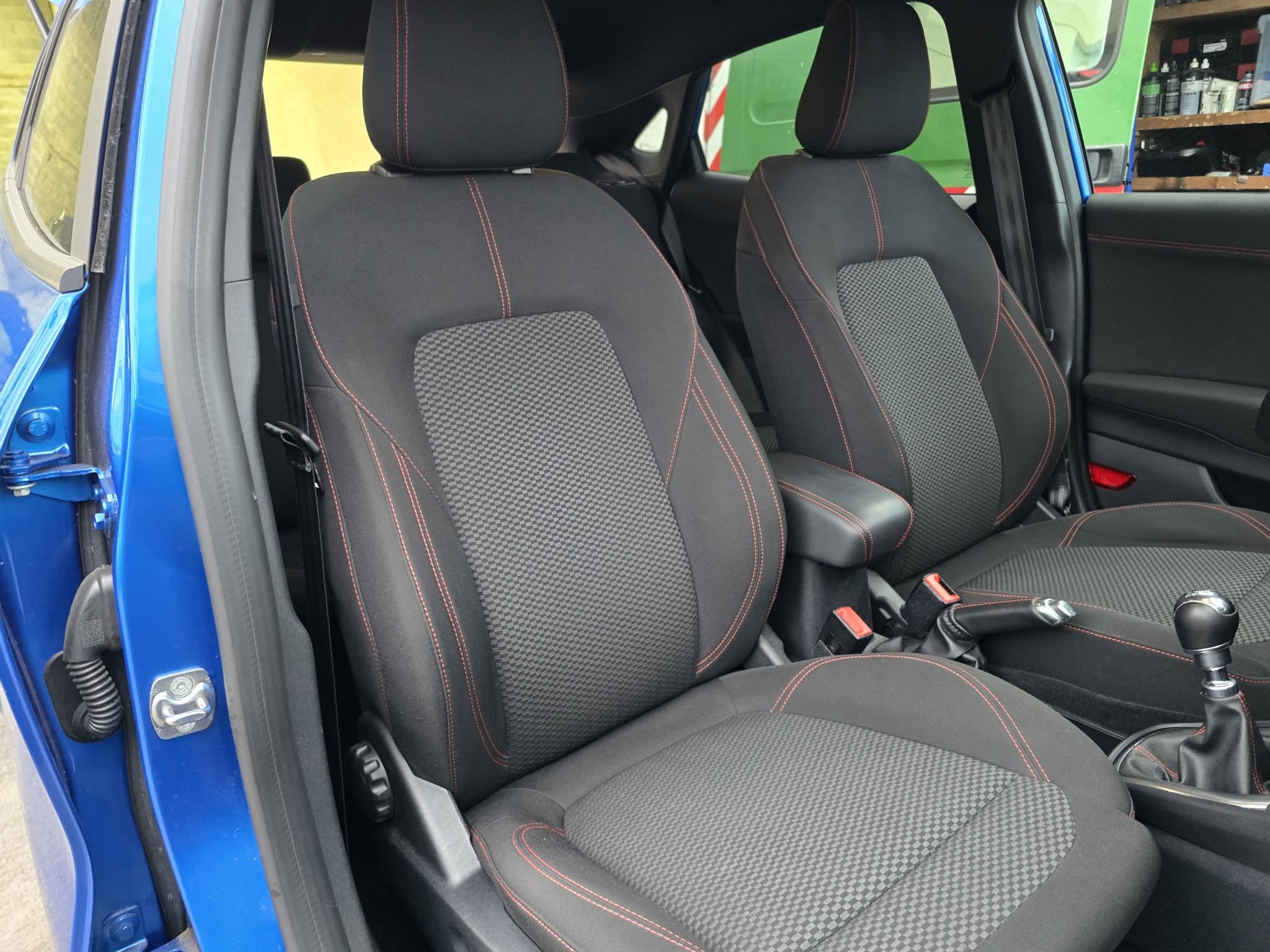 – Sellerie tissu noir Court et rouge